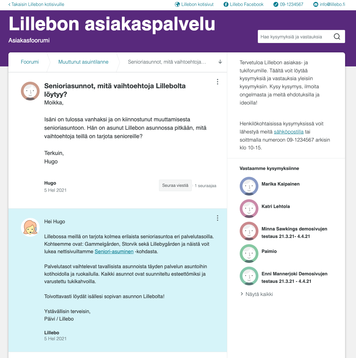 Hyvin suunniteltu foorumi auttaa vierailijoita löytämään helposti vastauksia kysymyksiinsä, mikä lisää asiakastyytyväisyyttä. Samalla vähennät muihin viestintäkanaviisi saapuvien viestien määrää!